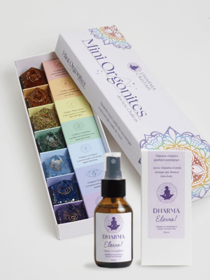 Combo Alinhamento e Elevação – Kit Mini Orgonites 7 Chakras + Spray Vibracional Dharma Eleva