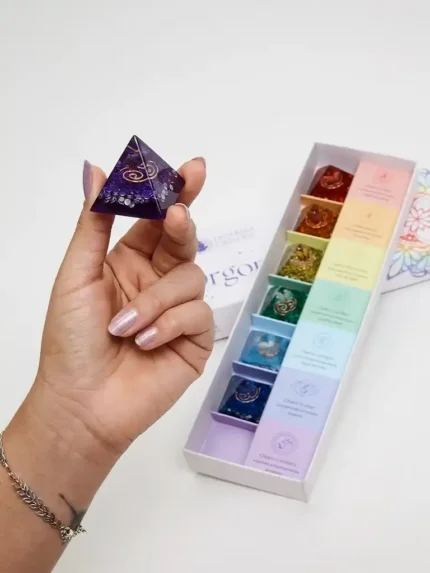 Cada mini orgonite representa um chakra e atua diretamente na limpeza, alinhamento e reconexão com a sua própria energia.