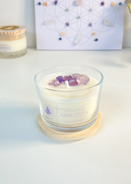 Vela Aromática Ametista – Alecrim & Cascas | Desperte seus Sentidos e Ative sua Intuiçã