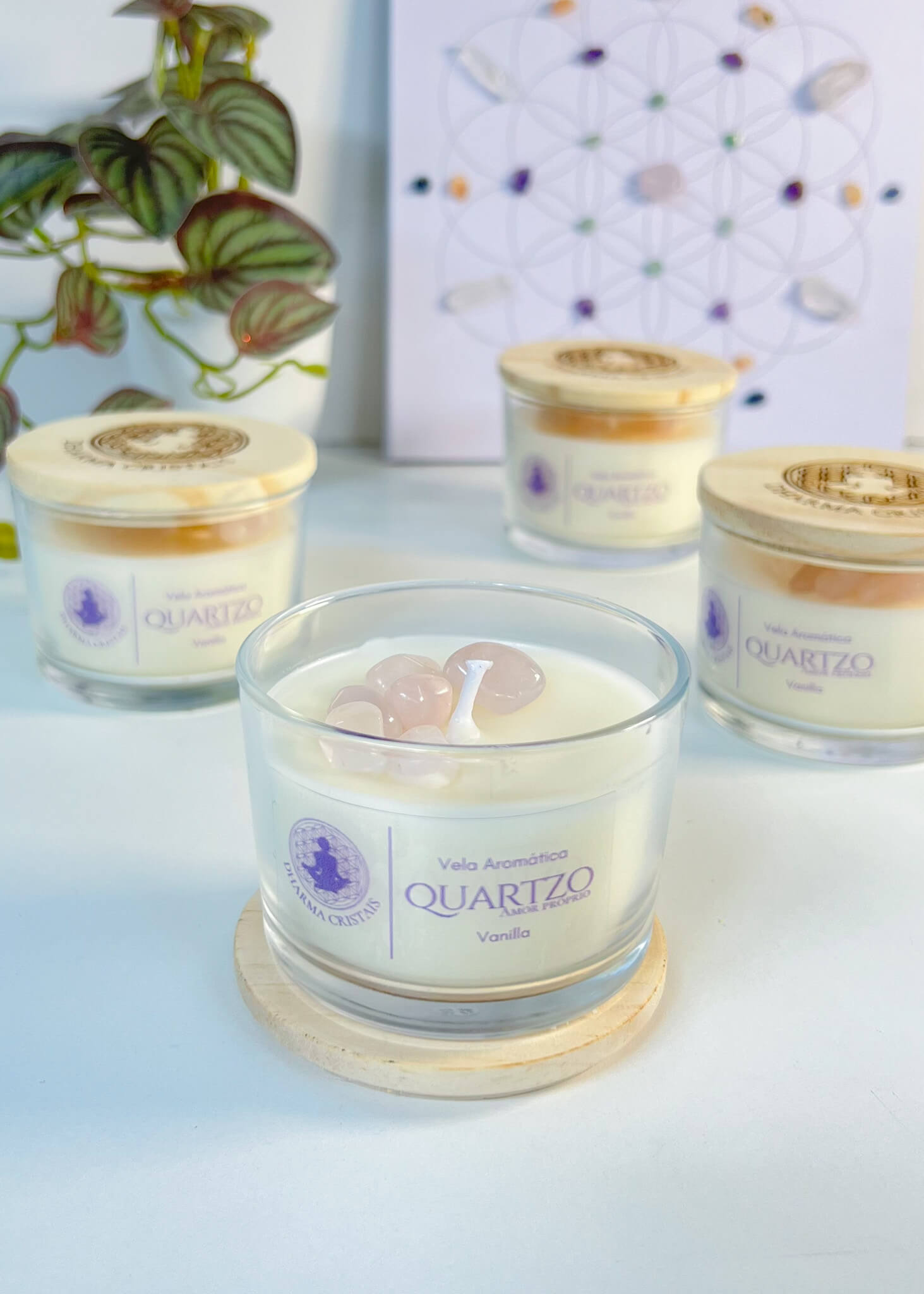 Vela Aromática Quartzo Rosa – Vanilla | Despertar o Amor e o Autocuidado